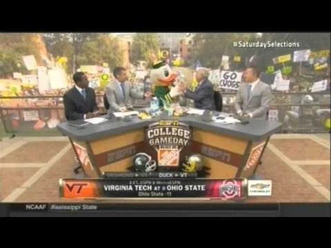 STORY: Monday, September 1st, I received a phone call at work while working at Yes To Carrots in San Francisco. ‘Mikey, ESPN wants you to guest pick on College Gameday. ‘ ‘Why the hell would they want me?’ I asked. “Oh sorry, not you, you as the Duck.”